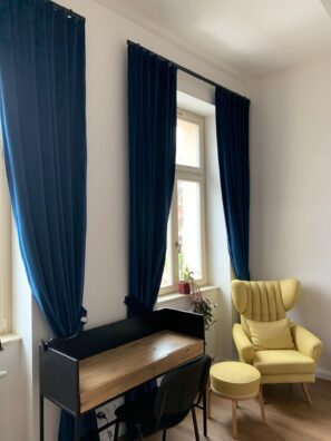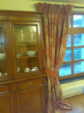- Pokud máme prostoru více - necháváme přesahy větší, tedy vždy se přizpůsobíme aktuálním možnostem. Tzn. pokud budeme mít závěsy, odhadneme prostor, který nám závěs bude zabírat při odsunutí mimo okno, aby nám nebral zbytečně světlo a využijeme tím v podstatě nepoužitelnou boční zeď na jeho „parkování“.