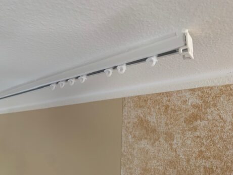– Používáme-li tyče z důvodu, že si to prostor vyžaduje – tzn. z důvodu ozdobných štuků, trámů nebo z důvodu nutnosti optického snížení stropu, pak je ideální montovat držáky do poloviny prostoru mezi výklenkem okna a ozdobnou stropní dekorací, trámem či stropem samotným.