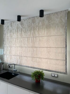 – Římskou roletu ideálně montujeme do stropu, pokud to není technicky možné, pak alespoň 20cm nad výklenek (20-25cm odpovídá zhruba její výšce při kompletním vytažení – samozřejmě tato míra závisí na jejím ušití), výška samotného systému je cca 5cm dle výrobce a hloubka cca 4cm